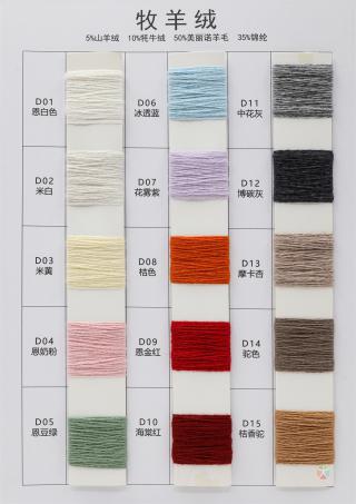 5%山羊绒 10%牦牛绒 50%美丽诺羊毛 35%锦纶