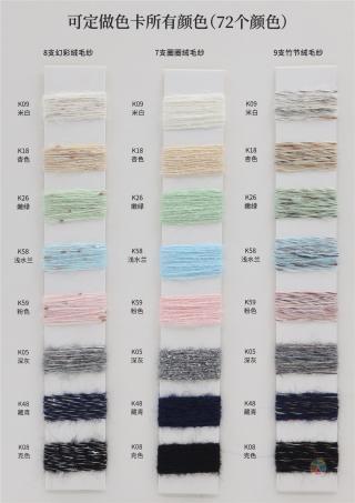 主营:潮汇纺织有限公司:包芯纱系列,短貂.银貂.黄金貂.长毛水貂绒.兔毛兔绒系列,羊毛羊绒系列,马海毛系列,空心带子纱系列,冰岛毛,圈圈纱,闪光纱,小肚纱,大肚纱,斜毛纱,单面绒,双面绒,竹节纱,彩点纱,水结珠,米粉纱,冰曲,仿貂绒,蜈蚣纱,羽毛纱,渐变纱,猫毛纱,丝绒,雪花点,香肠纱,松树纱