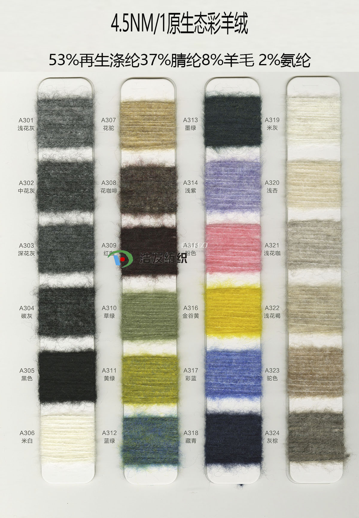 53%再生涤纶37%腈纶8%羊毛 2%氨纶