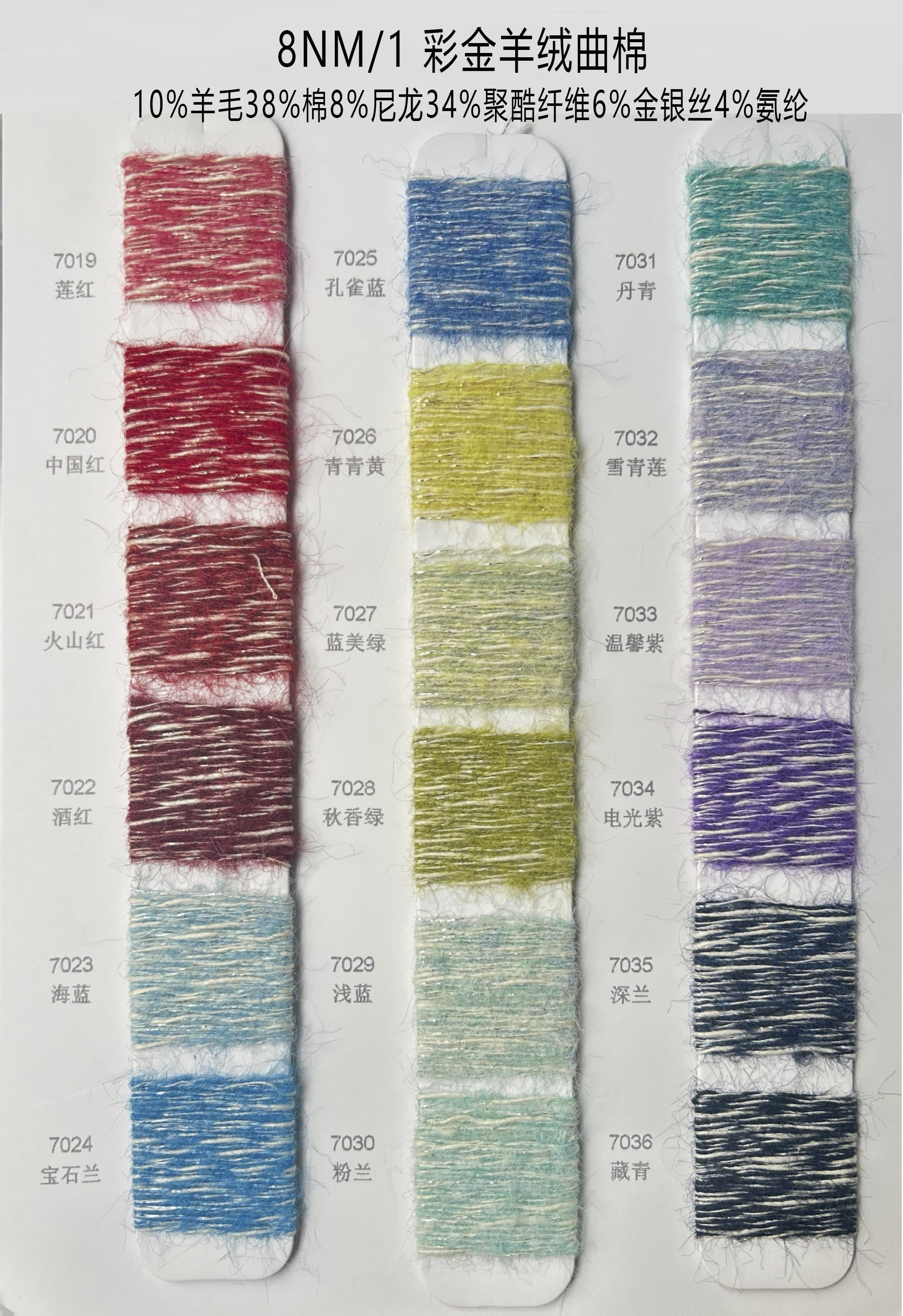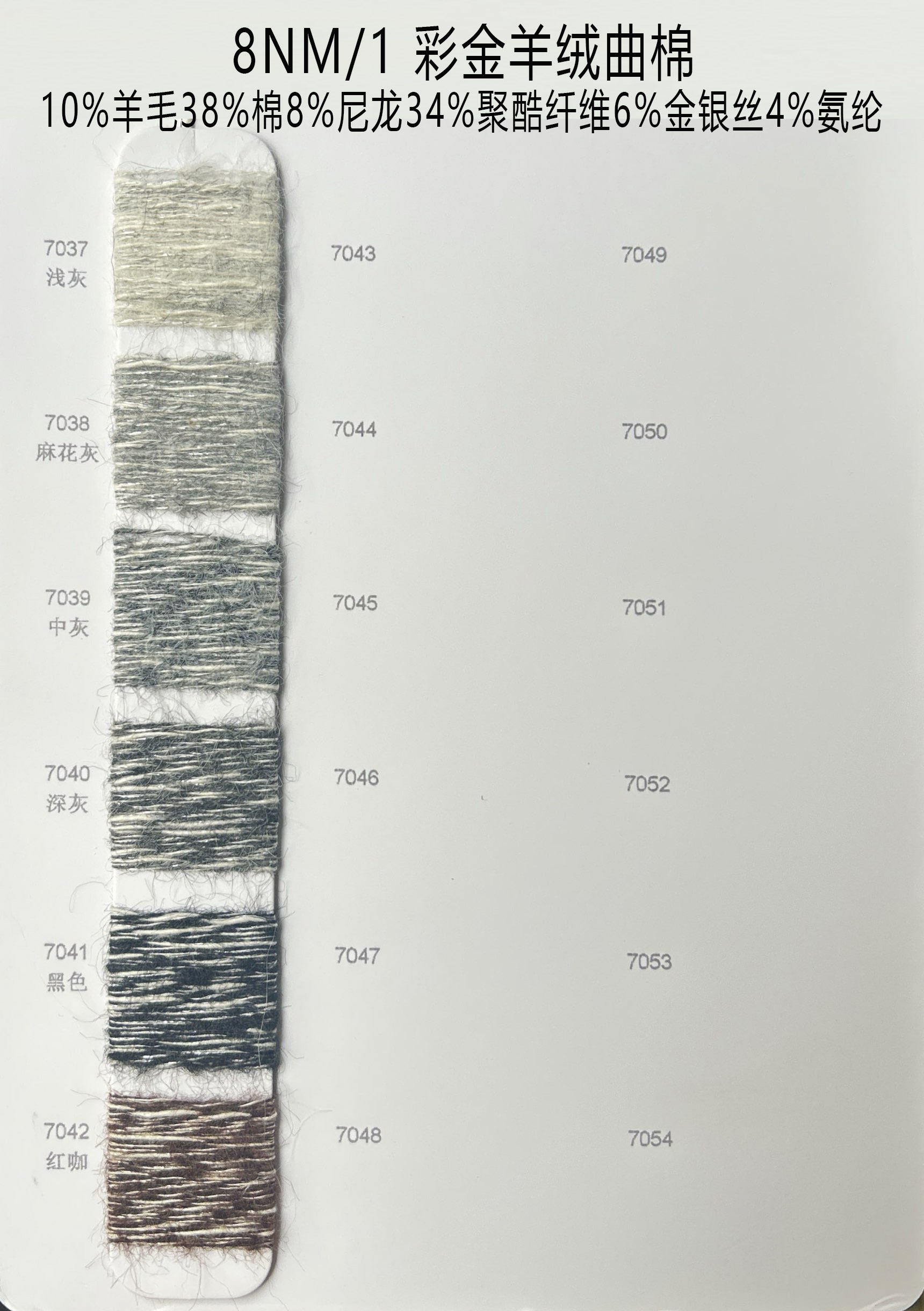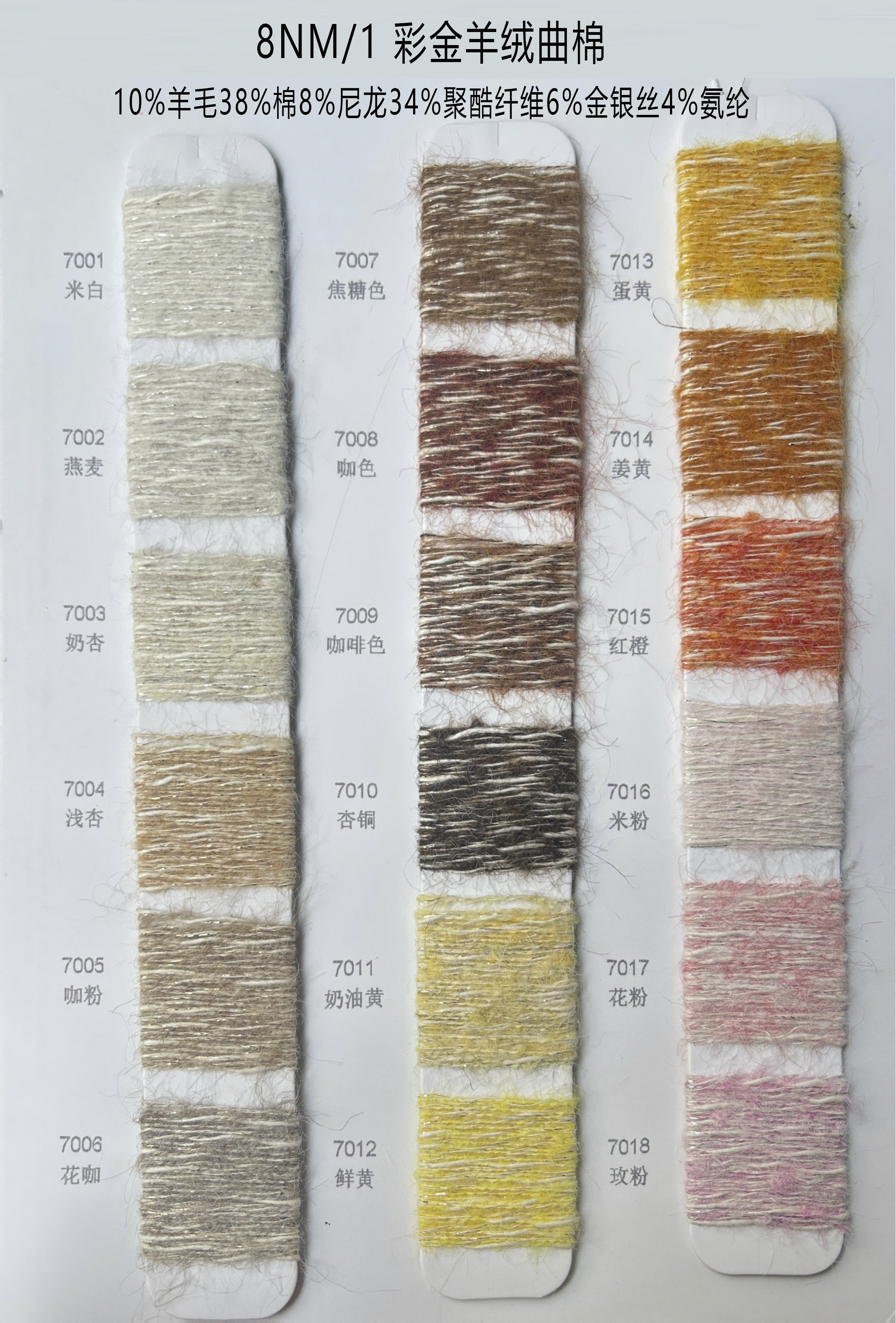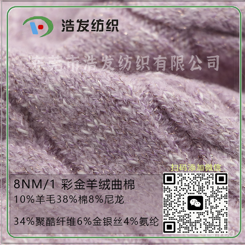 支数: 8NM/1 彩金羊绒曲棉