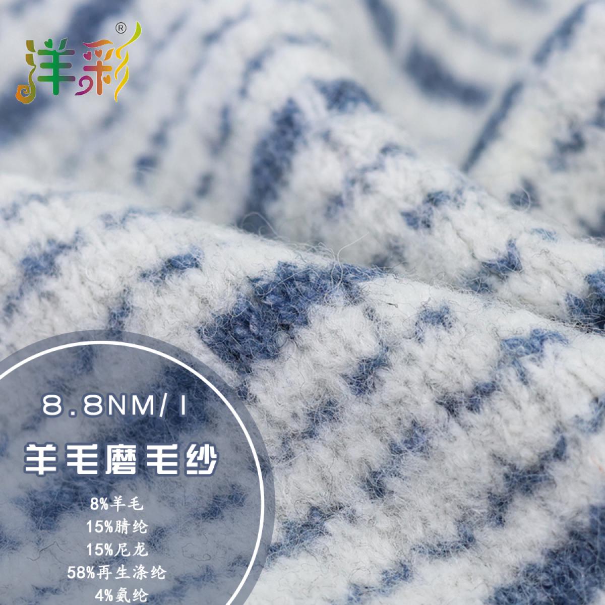 8%羊毛 15%腈纶 15%尼龙 58%再生涤纶 4%氨纶